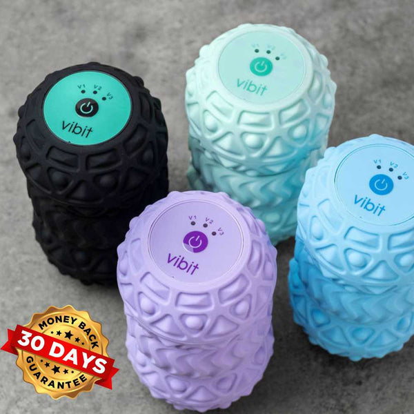 The Vibit GUN is a more relaxing approach, a great everyday release. The pressure that can be applied through a massage gun is limited when compared to the Vibit ROLL but is much more user friendly & extremely powerful for its size. A great way to loosen up a tight body after a day of work while watching TV.